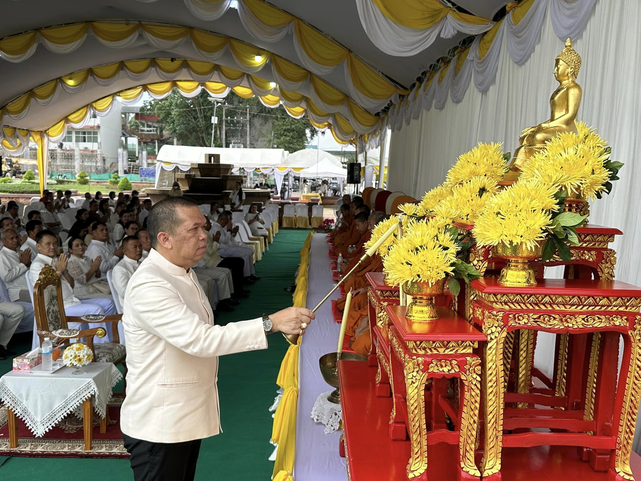 สำหรับการประกอบพิธีในวันนี้ กำหนดให้มีขึ้นตั้งแต่ช่วงเช้า ประกอบด้วย การวางพานพุ่มดอกไม้สดถวายราชสักการะ ของส่วนราชการ หน่วยงานภาครัฐและภาคเอกชน และการประกอบพิธีเจริญพระพุทธมนต์ ต่อด้วยการสรงน้ำรูปหล่อพระเจ้าศรีธรรมาโศกราชตามลำดับต่อไป