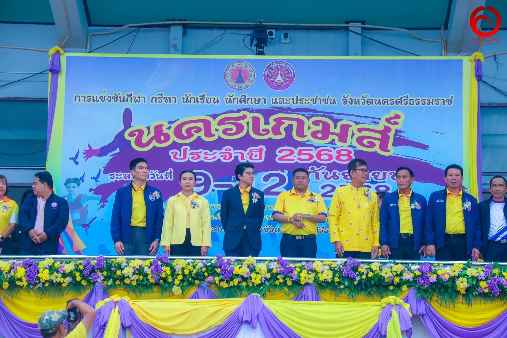 เย็นวันนี้(9 ก.ย.68) เวลา 18.00 น. ที่สนามกีฬาองค์การบริหารส่วนจังหวัดนครศรีธรรมราช (ชาติตระการโกศล) อำเภอเมืองนครศรีธรรมราช นายสมชาย ลีหล้าน้อย ผู้ว่าราชการจังหวัดนครศรีธรรมราช เป็นประธานเปิดการแข่งขันกีฬา กรีฑา นักเรียน นักศึกษาและประชาชน จังหวัดนครศรีธรรมราช“นครเกมส์” ประจำปี 2568 โดยมีนางสาววาริน ชิณวงศ์ นายกองค์การบริหารส่วนจังหวัดนครศรีธรรมราช และนายณัฐรินทร์ วงศ์ภิรภัทร์ ท่องเที่ยวและกีฬาจังหวัดนครศรีธรรมราช หัวหน้าส่วนราชการ ผู้แทนส่วนราชการ หน่วยงาน องค์กร สมาชิกสภาจังหวัดนครศรีธรรมราช ผู้บริหารท้องถิ่นท้องที่ นักเรียน นักศึกษา และสื่อมวลชนเข้าร่วมในพิธีเปิด
