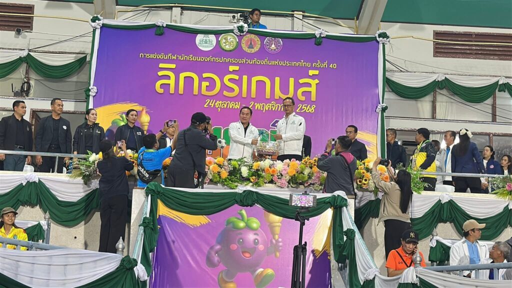 เย็นวันนี้(25 ต.ค.68) สนามกีฬาองค์การบริหารส่วนจังหวัดนครศรีธรรมราช (ชาติตระการโกศล) อำเภอเมืองนครศรีธรรมราช นายวิทยา เขียวรอด รองผู้ว่าราชการจังหวัดนครศรีธรรมราช ร่วมเป็นเกียรติและให้การต้อนรับนายสุรพล เจริญภูมิ รองอธิบดีกรมส่งเสริมการปกครองท้องถิ่น โอกาสเดินทางมาเป็นประธานในพิธีเปิดงานการจัดการแข่งขันกีฬานักเรียนองค์กรปกครองส่วนท้องถิ่นแห่งประเทศไทย รอบคัดเลือก ระดับภาคใต้ ประจำปีงบประมาณ พ.ศ.2569 “ลิกอร์เกมส์” ครั้งที่ 40 โดยมีหัวหน้าส่วนราชการ ผู้บริหารองค์กรปกครองส่วนท้องถิ่นในพื้นที่ 14 จังหวัดภาคใต้ คณะครูอาจารย์ นักเรียน ผู้ปกครองและประชาชนที่สนใจเข้าร่วมในพิธี