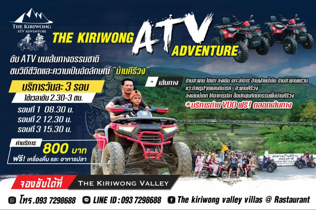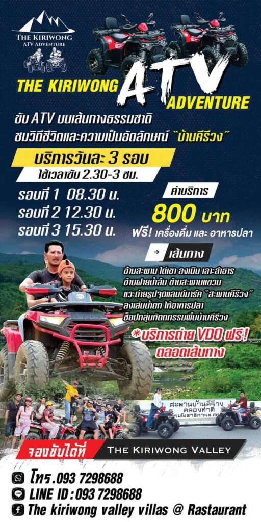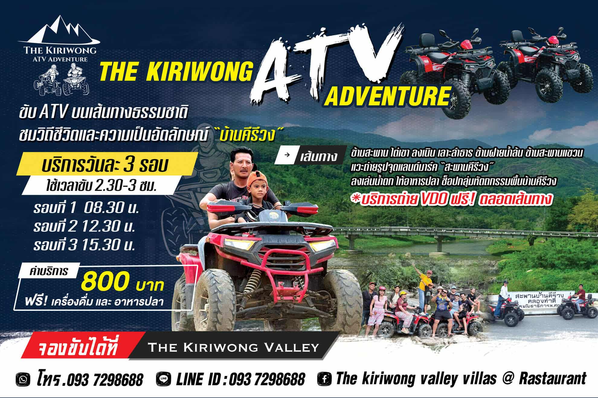 เตรียมตัวให้พร้อมสำหรับการท่องเที่ยวรูปแบบใหม่ที่น่าตื่นเต้นและท้าทาย! เดอะ คีรีวง แวลเลย์ วิลลา แอนด์ เรสเทอรองต์ (The Kiriwong Valley Villa and Restaurant) พร้อมแล้วที่จะเปิดตัวกิจกรรมสุดพิเศษ “คีรีวง รถเอทีวี” เพื่อเติมเต็มประสบการณ์การพักผ่อนและการผจญภัยในดินแดนที่มีอากาศดีที่สุดแห่งหนึ่งของประเทศไทย / ผจญภัยสุดเร้าใจ บนเส้นทางธรรมชาติอันบริสุทธิ์ กิจกรรม “คีรีวง รถเอทีวี” นี้ จะพานักท่องเที่ยวออกสำรวจความงามของหมู่บ้านคีรีวงและพื้นที่โดยรอบในอำเภอลานสกา จังหวัดนครศรีธรรมราช ด้วยรถขับเคลื่อนสี่ล้อ (ATV) สุดแกร่ง