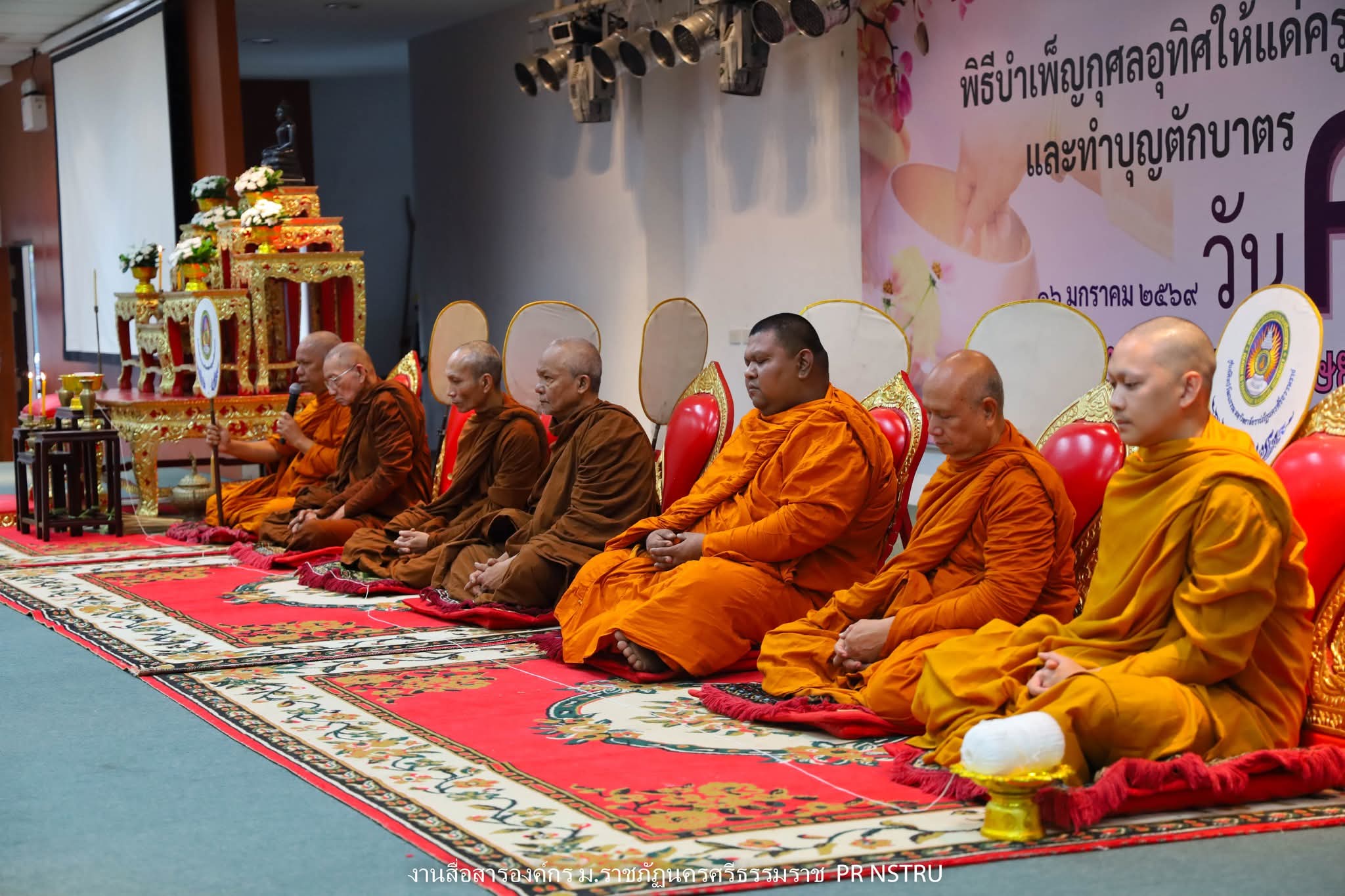 คณะครุศาสตร์ มหาวิทยาลัยราชภัฏนครศรีธรรมราช จัดกิจกรรมสืบสานวันครู ประจำปี 2569 ในวันที่ 16 มกราคม 2569 ณ หอประชุมภักดีดำรงฤทธิ์ มหาวิทยาลัยราชภัฏนครศรีธรรมราช โดยได้รับเกียรติจาก ผู้ช่วยศาสตราจารย์ ดร.วิชิต สุขทร รองอธิการบดี ฝ่ายวิชาการ กิจการนักศึกษา และงานบุคคล เป็นประธานในพิธี