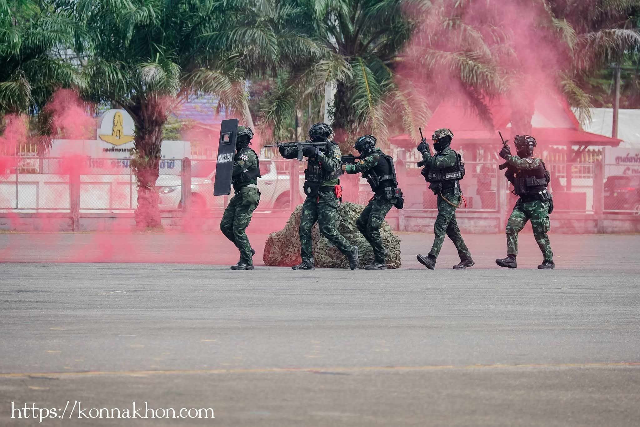 โดยก่อนพิธี มีการแสดง จำนวน 3 ชุด ประกอบด้วย การแสดงเครื่องบินรบของกองทัพอากาศ แบบกริพเพน (Gripen) แสดงขีดความสามารถทางอากาศยานและการป้องกันประเทศ, การแสดงชุดปฏิบัติการรบ จาก กรมทหารราบที่ 15 และ กองพันทหารราบที่ 2 กรมทหารราบที่ 15 และการแสดงของนักศึกษาวิชาทหาร จากวิทยาลัยนาฏศิลป์นครศรีธรรมราช โดยมีพี่น้องประชาชนในพื้นที่เข้าร่วมชมการแสดงเป็นจำนวนมาก