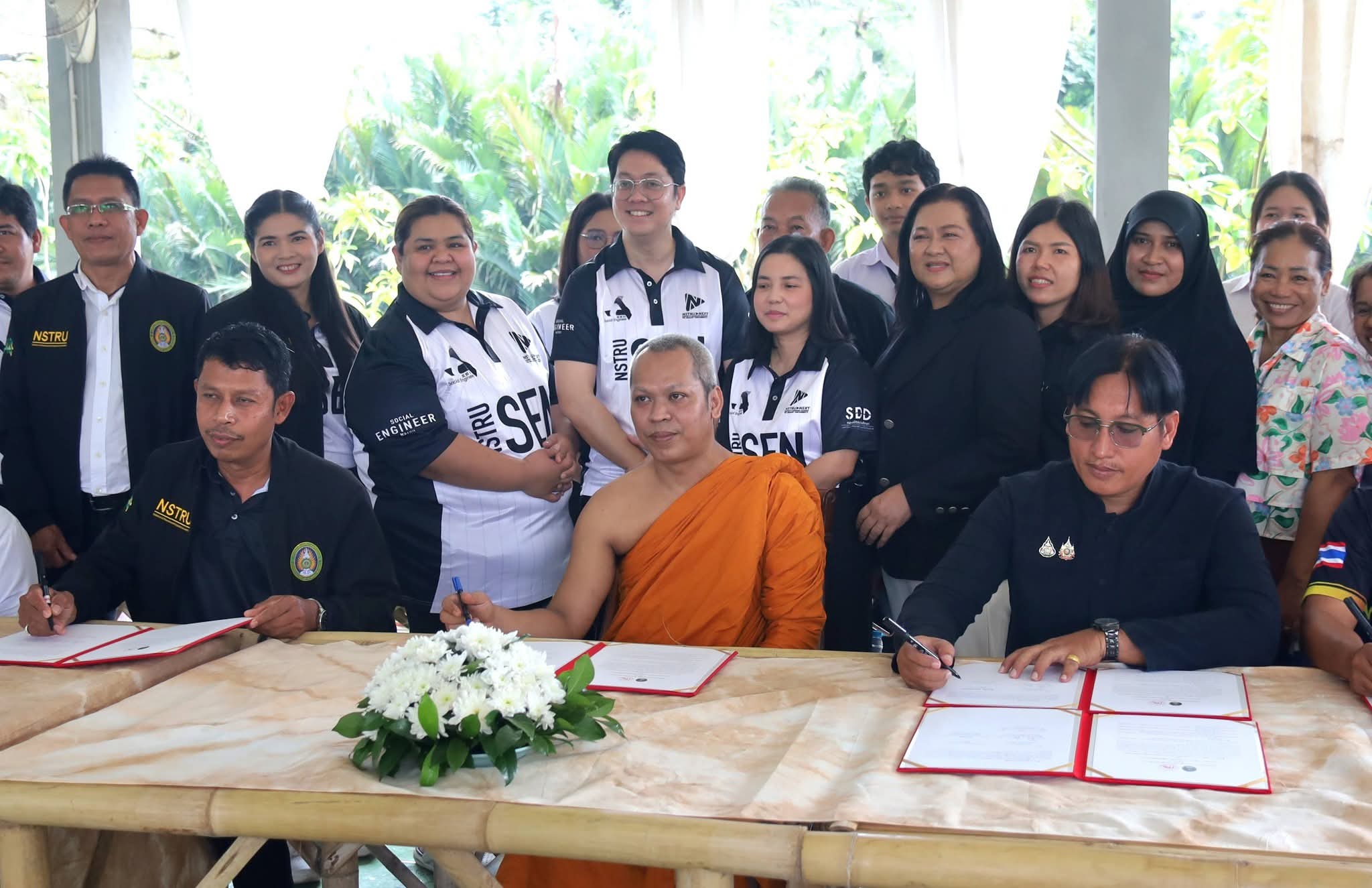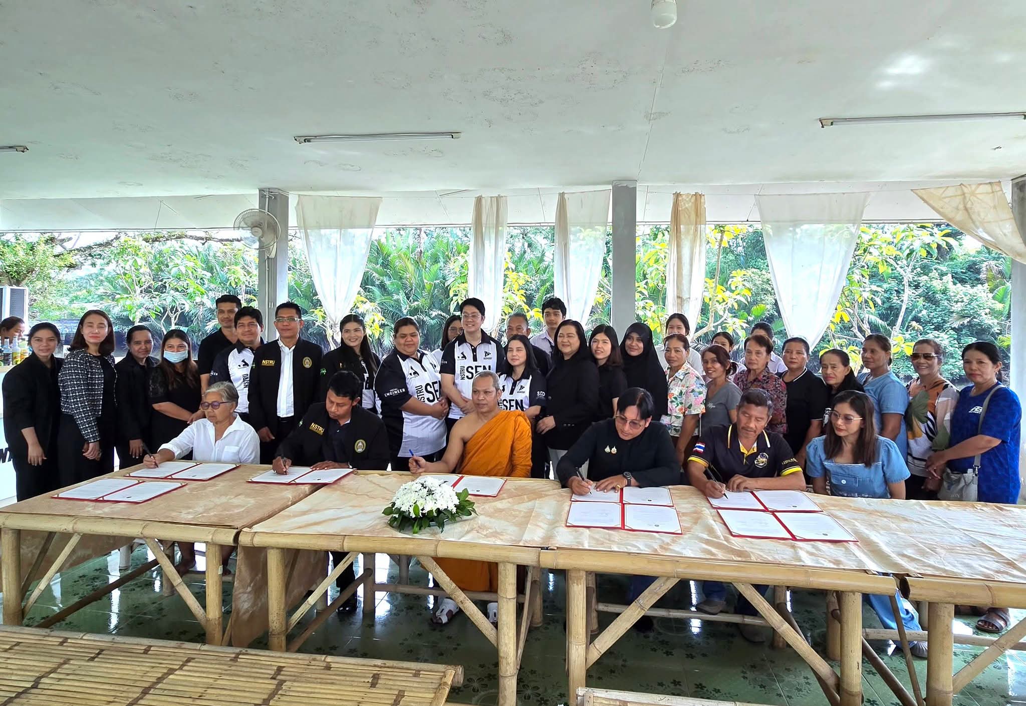 วันนี้ (23 ม.ค.69) คณะวิทยาการจัดการ มหาวิทยาลัยราชภัฏนครศรีธรรมราช เดินหน้าโครงการพัฒนาระบบบริหารจัดการมหาวิทยาลัยสู่ความเป็นเลิศ (โครงการที่ 25) จัดพิธีลงนามบันทึกข้อตกลงความร่วมมือ (MOU) และเวทีแลกเปลี่ยนเรียนรู้ เพื่อขับเคลื่อนการพัฒนาท้องถิ่นอย่างเป็นรูปธรรม ณ วัดธาราวดี จังหวัดนครศรีธรรมราช โดยมี ดร.จรุ ถิ่นพระบาท คณบดีคณะวิทยาการจัดการ มหาวิทยาลัยราชภัฏนครศรีธรรมราช เป็นประธานในพิธีเปิดกิจกรรมบริหารจัดการโครงการมหาวิทยาลัยราชภัฏเพื่อการพัฒนาท้องถิ่น พร้อมลงนามบันทึกข้อตกลงความร่วมมือ ร่วมกับภาคีเครือข่ายสำคัญทั้ง 5 ฝ่าย ได้แก่ 1.ดร.จรุ ถิ่นพระบาท คณบดีคณะวิทยาการจัดการ มหาวิทยาลัยราชภัฏนครศรีธรรมราช, 2.พระครูปริยัติธารารักษ์ เจ้าอาวาสวัดธาราวดี, 3.คุณประเสริฐ แสนทองแก้ว ผู้ใหญ่บ้าน หมู่ 10 ต.คลองน้อย 4.คุณปริญญา ลักษณะวิมล ผู้ใหญ่บ้าน หมู่ 3 ต.บางจาก 5.คุณชะเอม ทองอุ่น ผู้นำกลุ่มชุมชน, โดยมี ทุกภาคส่วนที่เกี่ยวข้อง พี่น้องประชาชนในชุมชน และสื่อมวลชน เข้าร่วมสังเกตการณ์ บันทึกภาพ และทำข่าว เพื่อรายงานสถานการณ์สำคัญ