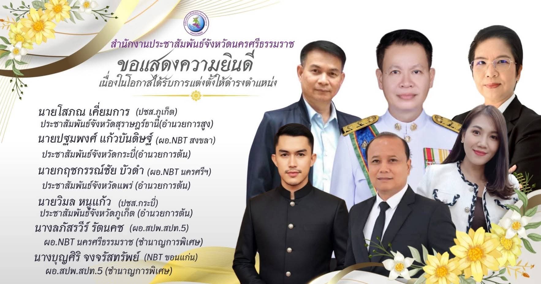 ภายใน สนง.NBT ได้รับเกียรติจากกลุ่มเพื่อนพ้อง น้องพี่ ญาติสนิท รวมถึงทีมงานผู้สื่อข่าว ในพื้นที่ เดินทางมาร่วมแสดงความยินดีอย่างคับคั่ง พร้อมมอบดอกไม้ และของที่ระลึก เพื่อเป็นการรับขวัญ และให้กำลังใจในการปฏิบัติหน้าที่เพื่อพี่น้องชาวนครศรีธรรมราช