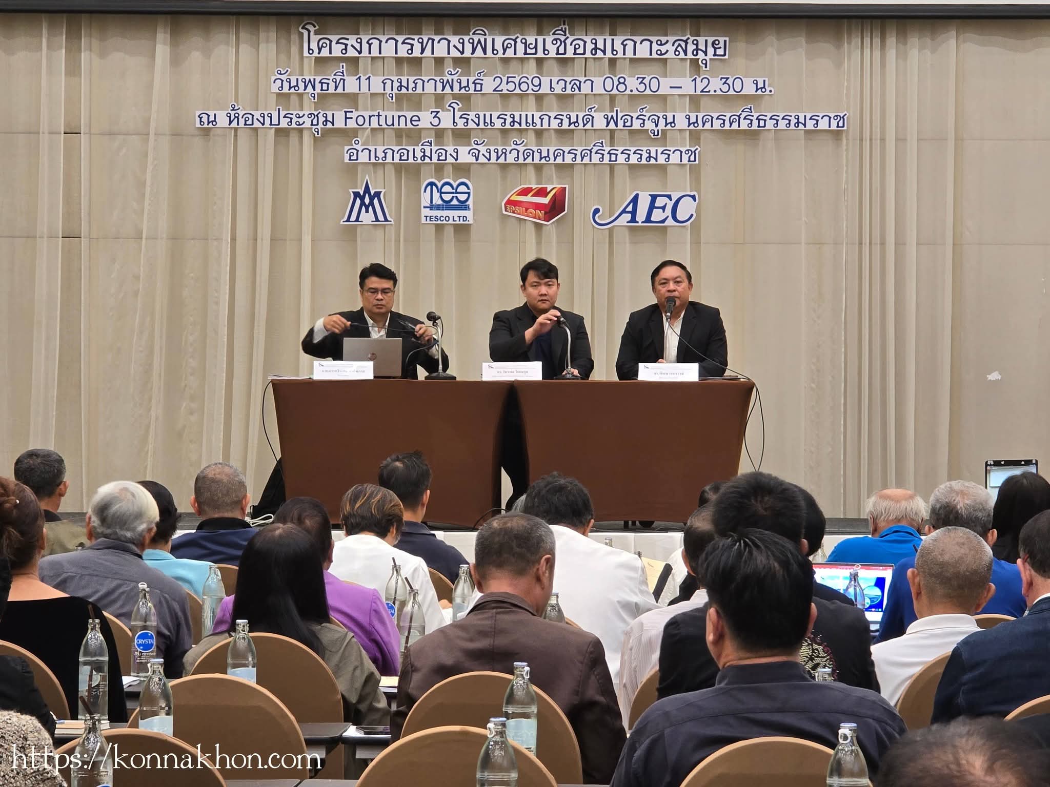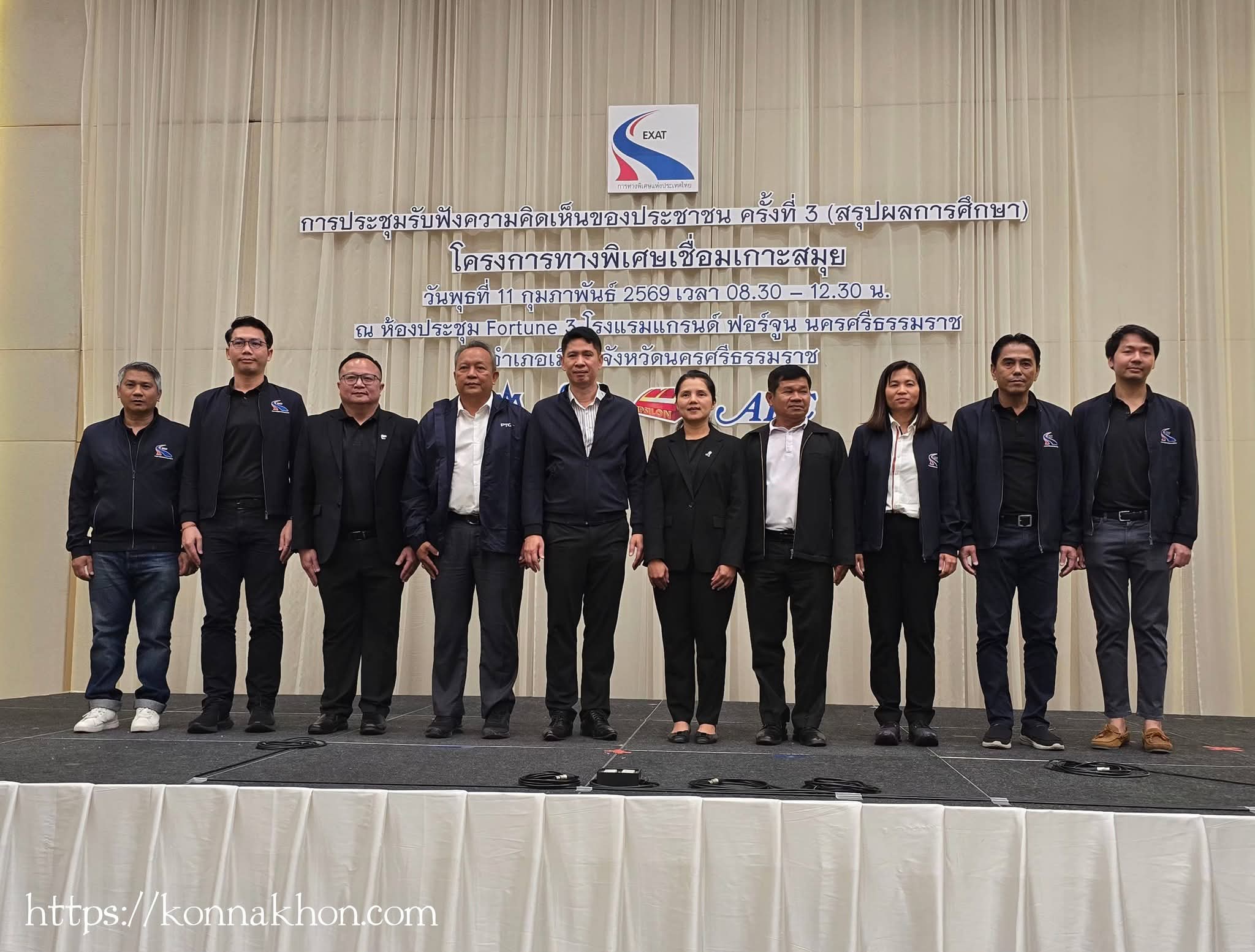 วันนี้ (11 ก.พ.69) ณ ห้องประชุม Fortune 3 โรงแรมแกรนด์ ฟอร์จูน นครศรีธรรมราช อําเภอเมือง จังหวัดนครศรีธรรมราช การทางพิเศษแห่งประเทศไทย (กทพ.) การประชุมรับฟังความคิดเห็นของประชาชน ครั้งที่ 3 (สรุปผลการศึกษา) งานศึกษาความเหมาะสมทางด้านวิศวกรรม เศรษฐกิจ การเงิน และผลกระทบสิ่งแวดล้อม โครงการทาง พิเศษเชื่อมเกาะสมุย โดยมี นายสุวัฒน์ จันทร์สุข รองผู้ว่าราชการจังหวัดนครศรีธรรมราช และนางสาวณัฐา กาสี รองผู้ว่าการ (การงิน บัญชี และพัฒนาธุรกิจ) ร่วมเป็นประธานเปิดการประชุมฯ มีผู้เข้าร่วมการประชุมฯ จากหน่วยงานภาครัฐ และเอกชน องค์กรปกครองส่วนท้องถิ่น ผู้นําชุมชน องค์กรเอกชน ด้านการคุ้มครองสิ่งแวดล้อมและอนุรักษ์ทรัพยากรธรรมชาติ ครอบคลุมผู้ได้รับผลกระทบ องค์กรพัฒนาเอกชน สถาบันการศึกษา นักวิชาการอิสระ สื่อมวลชน และประชาชนทั่วไปที่ให้ความสนใจ รวมถึงผู้เข้าร่วมรับฟังผ่านสื่อทางไกลรวมจํานวนประมาณ 200 คน